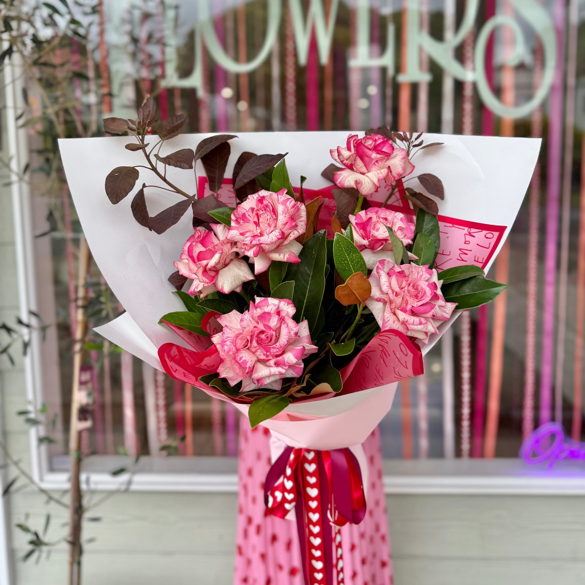 All My Love is the ultimate declaration wrapped in petals. This stunning modern bouquet features 6 Lush, reflexed premium Pink Magic Time roses and lush foliage. The timeless symbol of romance and passion. Each bloom is carefully selected, reflexed by hand and arranged to create a show-stopping display that speaks volumes without saying a word.