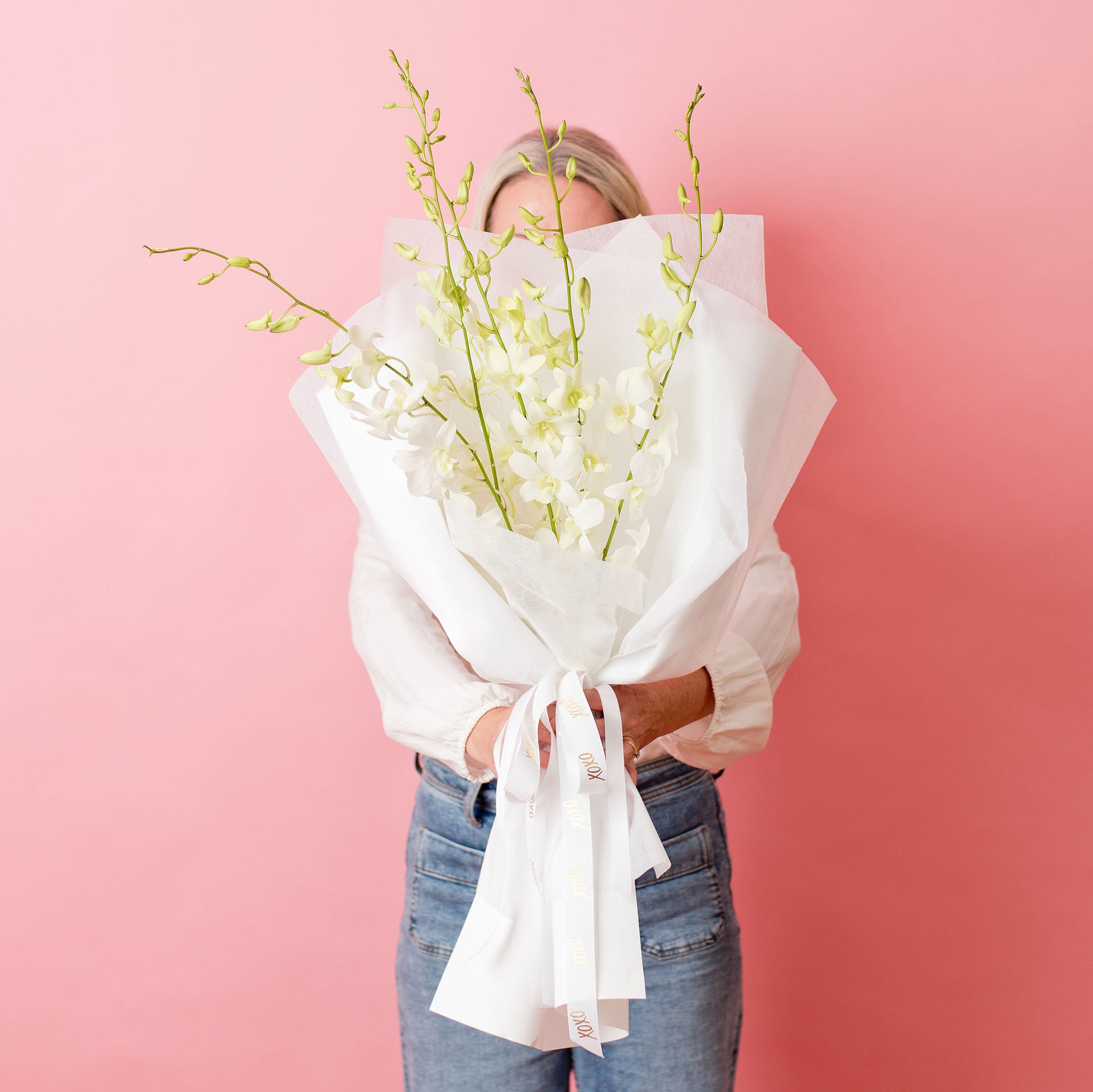 Each stunning wrap comes with 5 Heavenly Orchid stems (no greenery) to style beautifully at home.