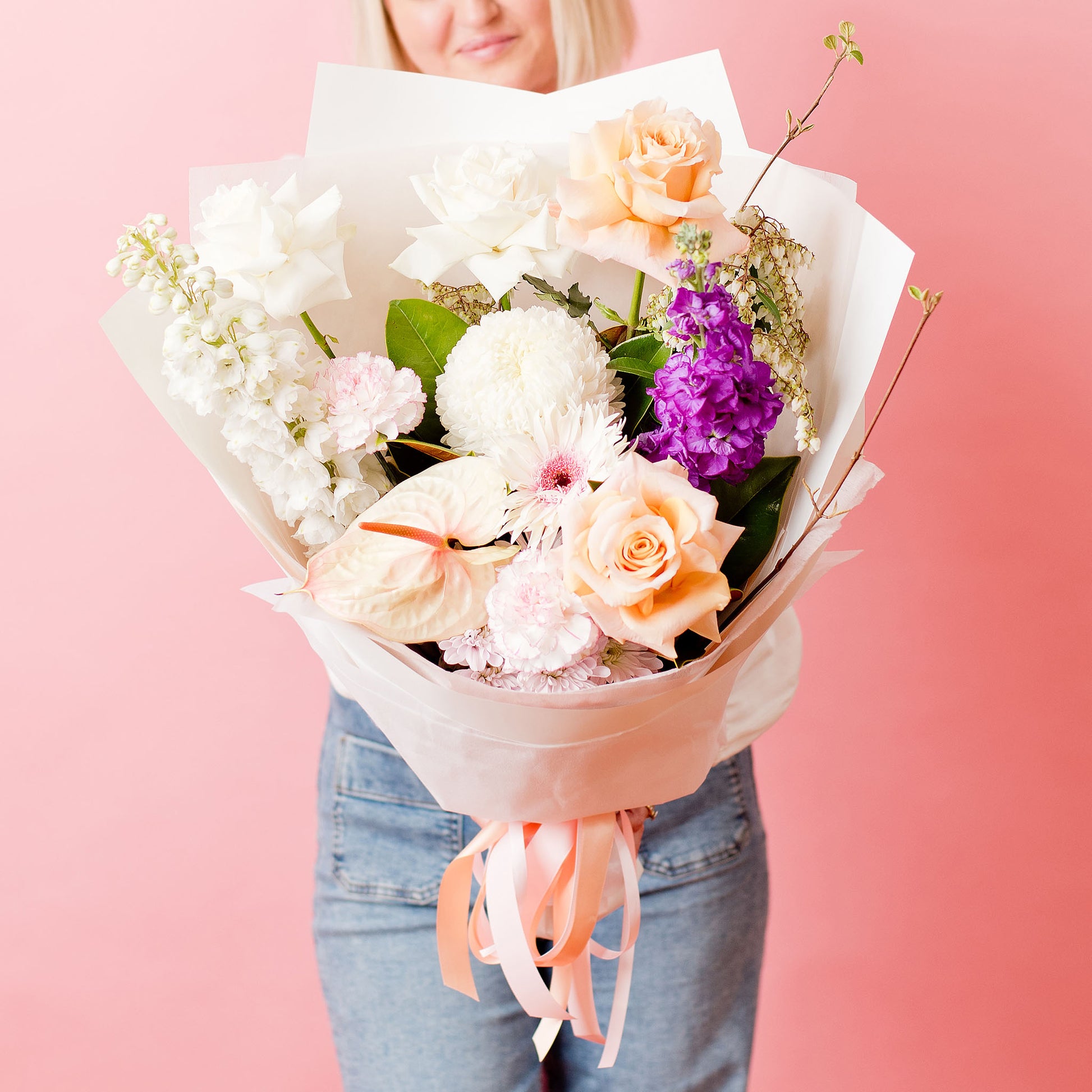 The prettiest of blooms.... a bouquet bursting with soft, feminine textures and gentle hints of colour. Soft, sweet, playful and ohhhh sooo girly. Perfect for adding a sprinkle of sugar to your day or gifting a smile to someone special.